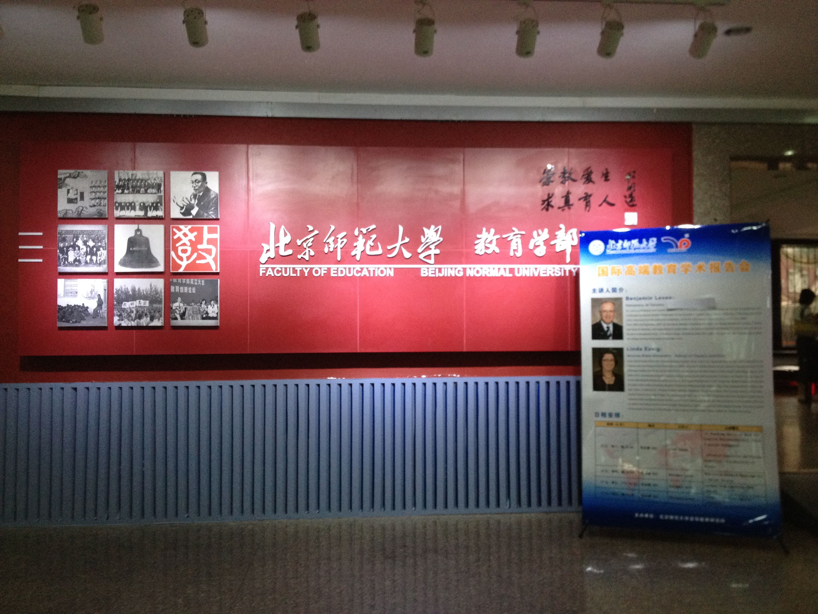 Chinese secondary education culminates in a placement exam taken by all Chinese teens.  As my host explained, “this test is very important. The student’s future depends on it.”  Parents in the US (including me) may complain about the “teaching to the test” pedagogy that has pervaded our education system here since No Child Left Behind, but that is nothing compared to the high stakes testing environment in China. When I began my talk on group creativity, I asked the attendees, “How many of you played a musical instrument in an ensemble, orchestra or band? Or participated in a theatrical performance as a child?” Not a single student had had a collaborative arts experience – ever. One faculty member, my host, had performed in traditional opera thirty years prior, but he was the only person in the hall to have done so.  I mentioned this to another visiting professor, Ben Levin, an education policy scholar from University of Toronto, who responded, “I’m not surprised; their entire primary and secondary education is geared toward the test. There is no time for anything else.”  As I summarized some recent cognitive research related to process creativity and improvisation in my lecture, I wondered to myself if the lack of opportunity to participate in process-oriented creative thinking has put the brakes on the cognitive abilities of these young people.   IMG_0677