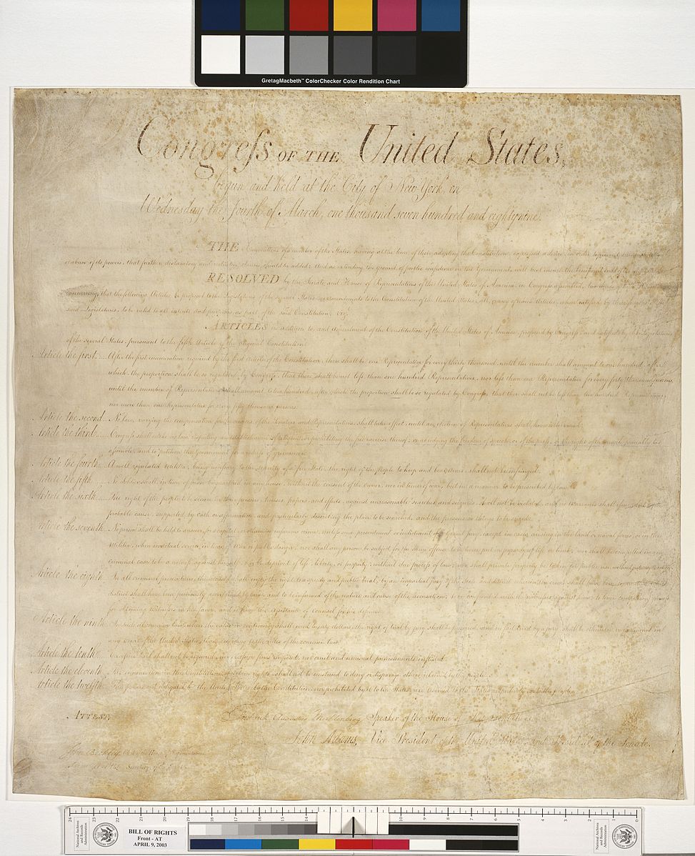 (image of The Bill of Rights placed in the public domain by the National Archives and Records Administration)