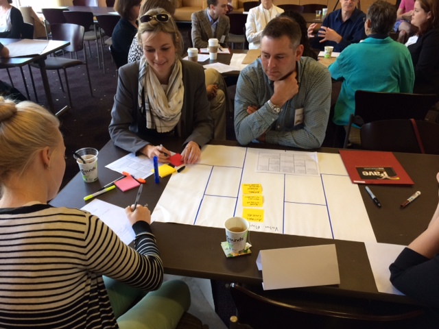 Active engagement. Traditional academic conferences can be dry and, most problematically, often result in small groups of people talking within their small groups about things they already know. We (and the “we” here is me and the small cadre of terrific graduate students in the arts entrepreneurship and management program as well as members of our steering committee) wanted to host an event that included active engagement and interaction. This was an area where the symposium truly excelled. From the icebreaker activity over breakfast (participant super-bingo) to the small groups working collaboratively and creatively during Elizabeth Long Lingo’s workshop, participants were actively engaged. They listened to each other empathically, shared ideas openly, and even got out of the building for some physical stretching led by Jessica Rajko to complement the stretching of our minds.